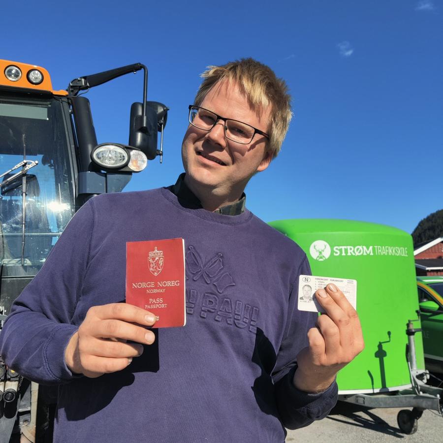 Du må ha med gyldig legitimasjon til teoriprøve, førerprøve, utstedelse av førerkort m.m. hos Statens vegvesen.